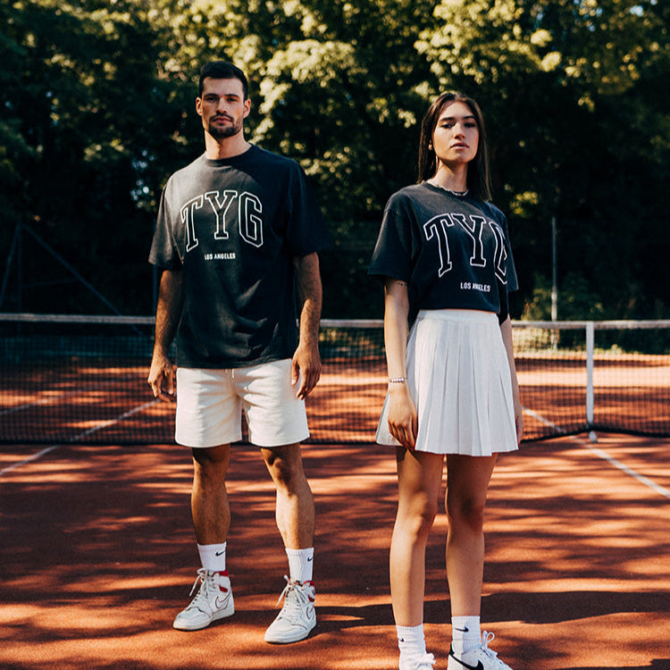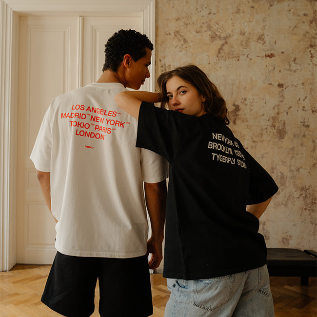 Cropped T-Shirt in Vintage Wash Black made of 100% cotton with screen print on the chest. Slightly oversized fit & dropped shoulders.